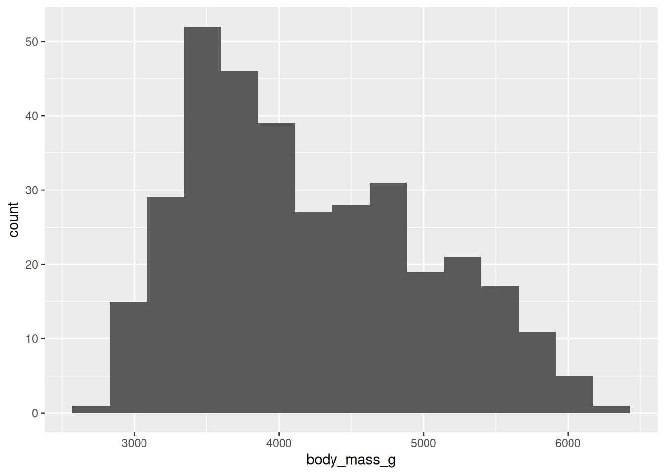 ggplot(data = penguins, mapping = aes(x = body_mass_g)) +