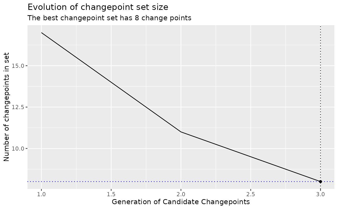 the best candidate changepoint sets in each generation.