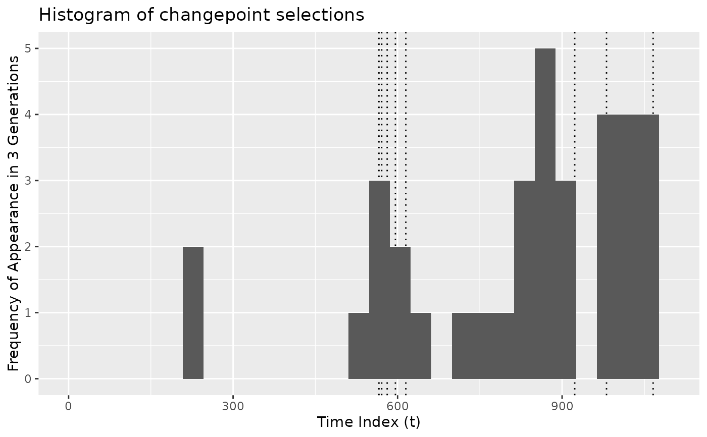 # Plot overall frequency of appearance of changepoints